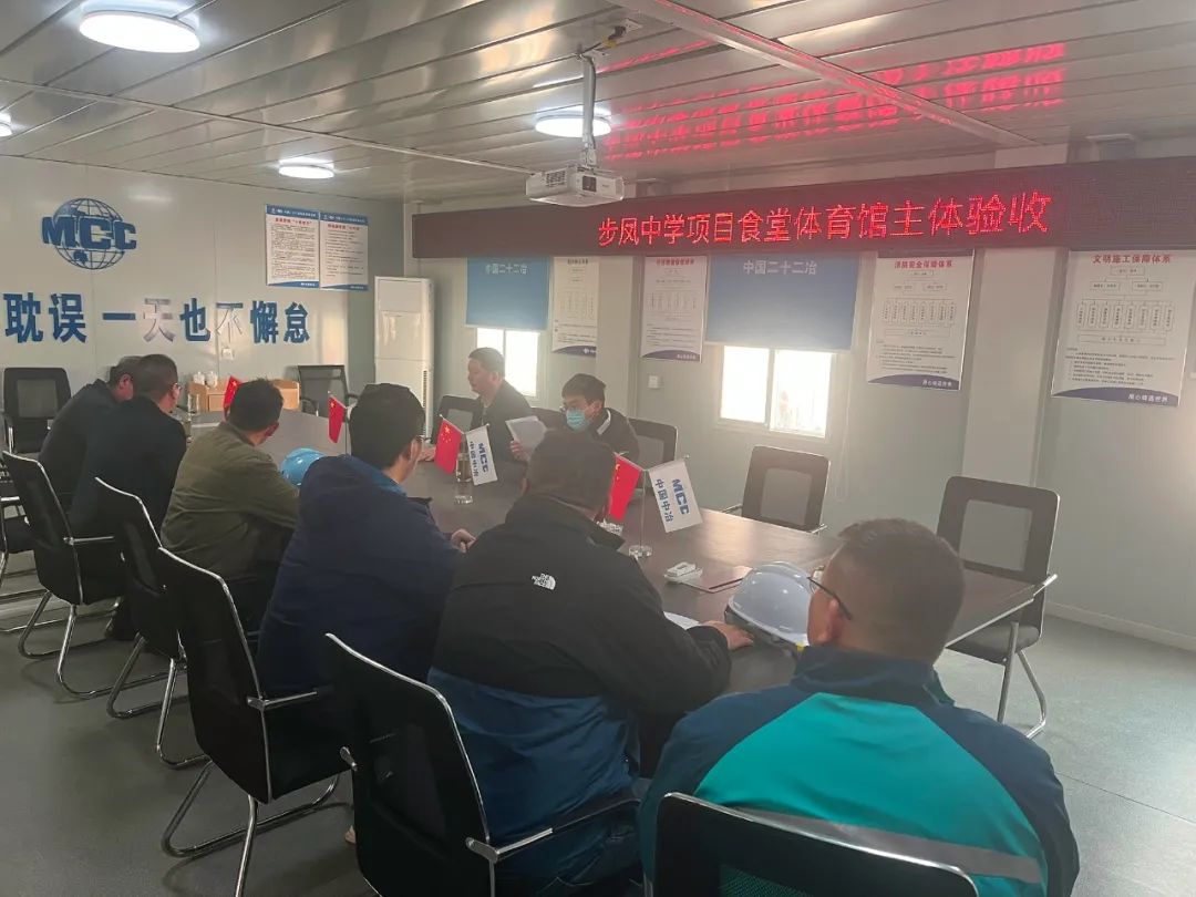 4月7日下午,鹽城經(jīng)濟(jì)技術(shù)開發(fā)區(qū)步鳳中學(xué)擴(kuò)建EPC總承包工程在項(xiàng)目部會(huì)議室召開了食堂及體育館主體驗(yàn)收會(huì)議,區(qū)質(zhì)安站、中國(guó)二十二冶集團(tuán)有限公司、江蘇創(chuàng)盛項(xiàng)目管理有限公司、集團(tuán)項(xiàng)目部等相關(guān)人員參加。