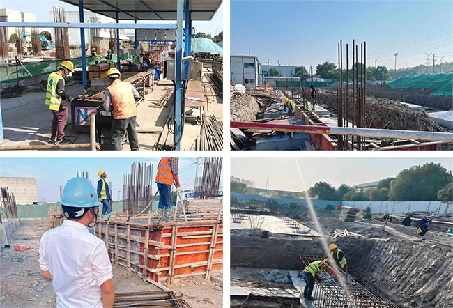 區(qū)環(huán)衛(wèi)基礎(chǔ)設(shè)施項(xiàng)目正處于基礎(chǔ)施工階段,項(xiàng)目現(xiàn)場(chǎng),施工人員都戴著安全帽在各自的工作崗位上忙碌,忙著扎鋼筋、搭建模板、灌漿混凝土等,現(xiàn)場(chǎng)焊接聲、切割聲、捶打聲等各種聲音交織成一首“施工交響曲”,到處是一片熱火朝天的忙碌景象。